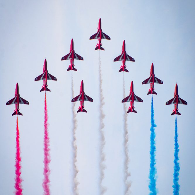 A fabulous framed print of the amazing Red Arrows, shot at the recent Great North Run as they release their distinctive smoke trails… Officially recognised and known as the Royal Air Force Aerobatic